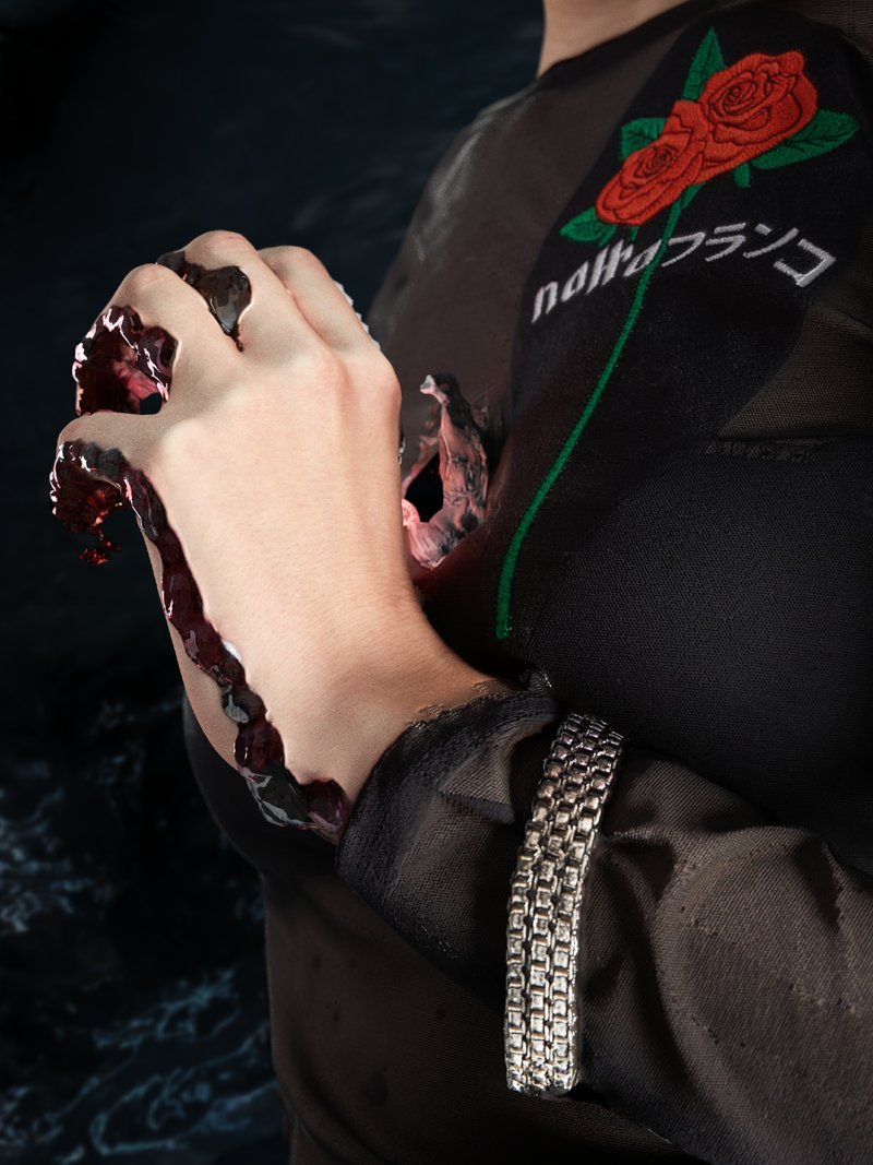 The work asks what a body does to the space around it — not through touch, but through proximity, weight, and the anticipation of movement.